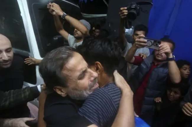 作为与哈马斯脆弱停火协议的一部分,以色列军队释放了五名巴勒斯坦囚犯及另外45人的遗体。在加沙出现了令人感动的场景,五名作为与哈马斯停火协议一部分而被以色列释放的巴勒斯坦囚犯与家人团聚。