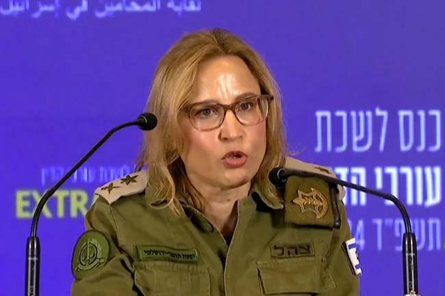 前以色列军队最高级别律师叶法特·托梅尔-耶鲁沙尔米少将因一段显示以色列士兵殴打巴勒斯坦囚犯的泄密视频被捕。