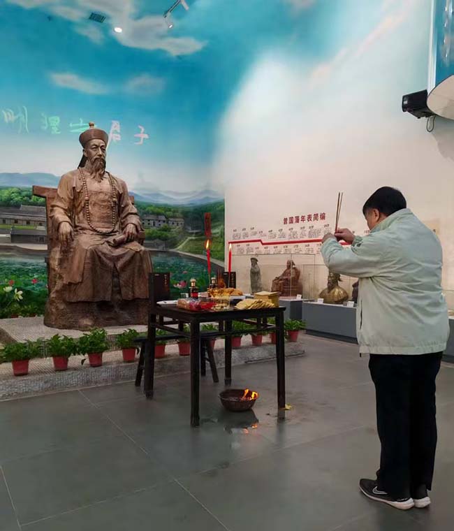 活动现场,涤生书院曾樾代表曾氏后人并书院同仁,虔敬地向曾文正公像敬献鲜花、摆放供品,以传统简洁的仪式表达对先贤的深切缅怀与崇高敬意。整个过程朴素肃穆,展现了曾氏家族对传承家风、铭记祖训的重视。