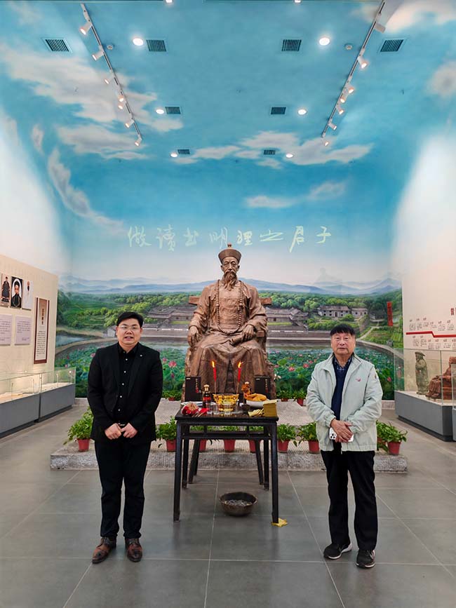 值曾国藩诞辰214周年之际,农历十月十一,六世来孙曾樾携部分曾氏族人专程来到位于湖南双峰的涤生书院,在曾国藩家庭教育博物院第一展厅,在先祖铜像前举行了庄重的祭奠仪式。