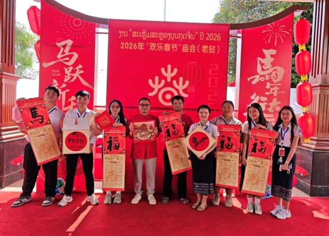 老挝文化中心主办的中老建交65周年暨中老友好年主题标识设计大赛颁奖仪式和2026年老挝“欢乐春节’’庙会启动仪式同时举行